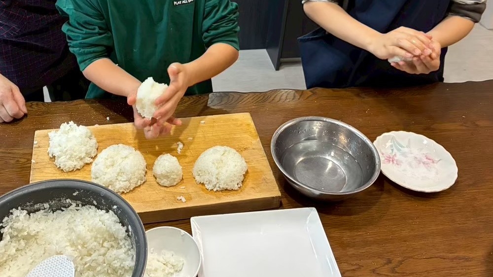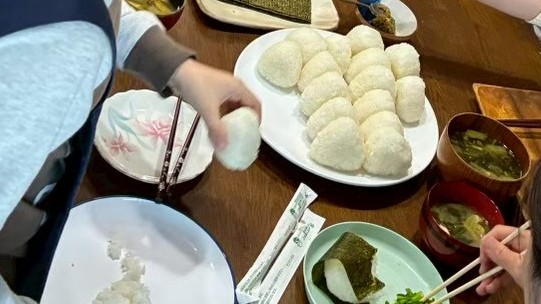 仕込みのあとは、塩おにぎりや旬のお野菜を用意し、みんなで食卓を囲みました。